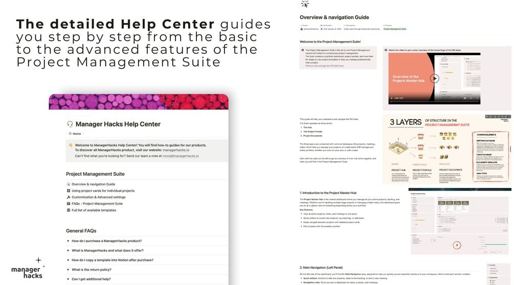 After working with a fast-growing SaaS company in March 2024 to streamline their project management approach, I put all my knowledge into building the perfect project management toolkit. The result? This all-in-one project management suite for Notion.