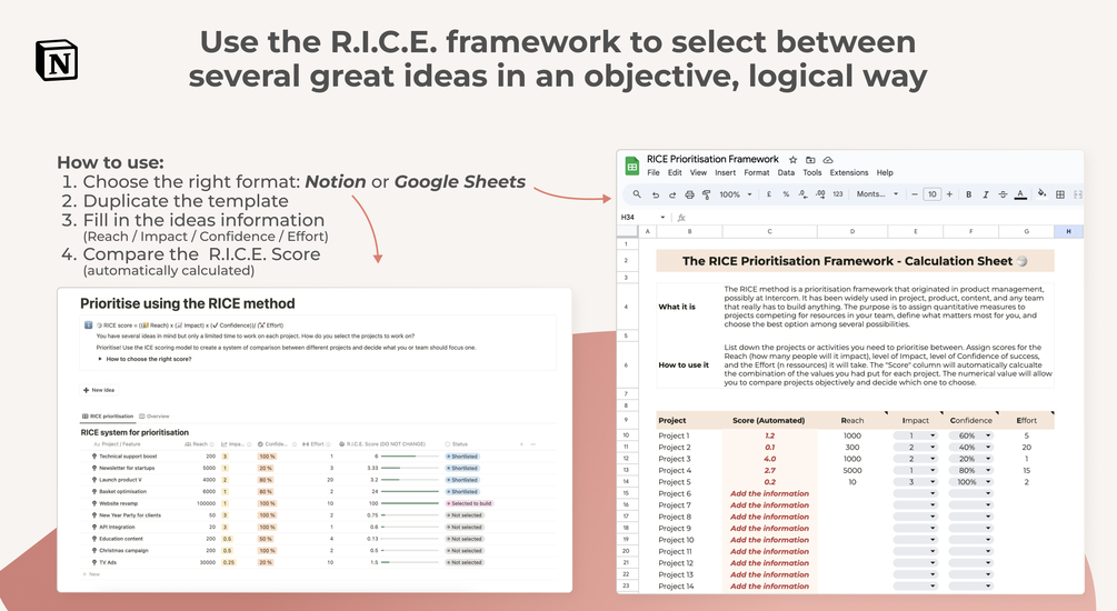 R.I.C.E. Prioritisation Framework - Notion & Google Sheets